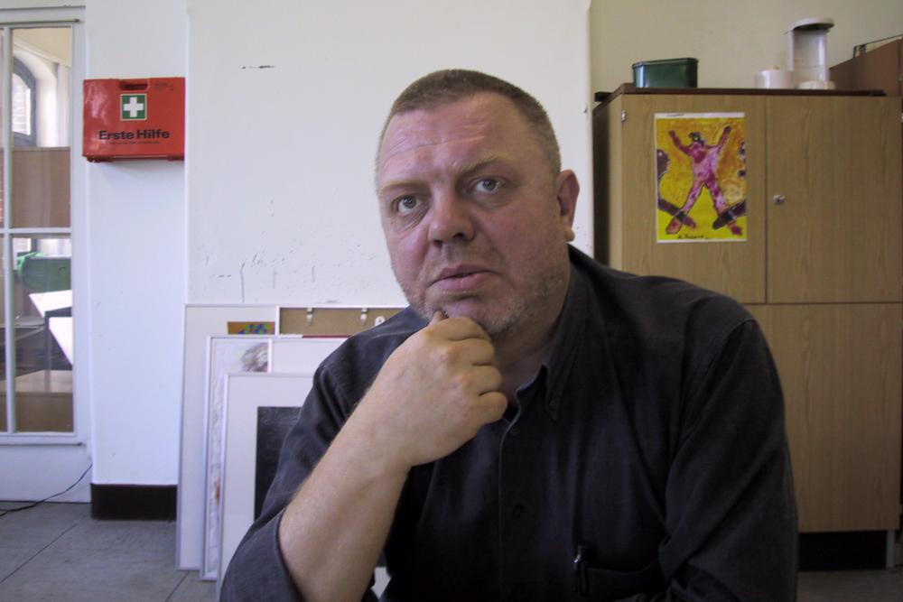 Schön haben wir das Malen, sagt Manfred, der seit langem in meine Malgruppe in den Rheinischen Kliniken Viersen kommt. Und: Malen tut gut und beruhigt, das hat mir jetzt richtig Spaß gemacht – höre ich. Die Teilnahme ist freiwillig und außerhalb des Therapieprogramms. Zur Malgruppe kommen Patienten aller Abteilungen der Klinik und auch entlassene: Nicht wichtig für die Teilnahme sind die Krankheiten, künstlerische Aspekte stehen im Vordergrund, nicht psychiatrische. Auch Geschlecht, Alter oder (künstlerische) Vorbildung spielen keine Rolle. Wichtig ist nur, daß der Teilnehmer aus sich heraus zeichnen oder malen will. Dazu gebe ich Anleitung, Hinweise, Unterstützung. Die künstlerische Arbeit mit psychisch Kranken erfordert sicherlich noch mehr Geduld und Einfühlung als ein Kurs draußen. Dort wie hier ist jedoch die wichtigste Voraussetzung die künstlerische Sachkompetenz, mit der ich Hilfe und Stütze gebe. Die künstlerisch interessierten jungen oder schon älteren Menschen sind für mich keine Patienten, denn ich bin Künstler und habe keine Patienten. Die Künstler also möchten ihren Gefühlen mit Stiften oder Pinsel und Farben Ausdruck geben, etwas schaffen, das sie und andere erfreut: Gegenständlich, expressiv oder abstrakt. Da – wie das heute so ist – meist für die Darstellung von Dingen oder Figuren die Voraussetzungen fehlen dominiert das Spiel mit Formen und Farben. Man könnte sagen, wir bringen Farbe in die Klinik. In vielen Klinik-Bereichen hängen unsere Bilder. Und unsere Ausstellungen, Bücher und Kalender haben stets ein sehr positives Echo. Man sollte den heilsamen Einfluss der Malens nicht überbewerten, die psychiatrische Therapie und die regelmäßige Einnahme der Medikamente sind zweifelsohne die unverzichtbaren Dinge in der Behandlung der Krankheit und - wie auch sonst im Leben - das Malen nicht mehr (und nicht weniger) als eine schöne Dreingabe. Aber für den engeren Kreis der Gruppe wird das Malen zur Aufgabe, ja zum Lebensinhalt. Die ernsthafte Betätigung mit Stiften und Farben und das Ergebnis schließlich bereiten meinen Künstlern Freude und helfen das Bewusstsein ihrer selbst und eine positive Perspektive für ihr Leben zu entwickeln. Kehren die Kurzzeit-Patienten ins Leben zurück ist es oft genug mit der Kunst wieder vorbei. Die Langzeitpatienten geben ihrem Leben mit der Kunst Sinn. Schon früher hätte der eine oder andere wohl gern einen künstlerischen Beruf ergriffen – doch man wird ja ´was ordentliches. Nun – aus dem Getriebe ´raus – kann er dann jedoch unbesorgt Künstler sein. Die regelmäßige Teilnahme gibt dem Leben Struktur und Erika Borzym und Hedwig von der Bank, Siegfried Pfeiffer und Werner Hahnen, Manfred Matthia und Degenhardt Bollig machen Zeichnungen und Aquarelle ohne Zahl. Klaus Ruland, ein vielseitiger und stetiger Maler fragte einmal, Na, Bollig, was macht die Kunst?, und bekam zur Antwort …es talentiert sich! Rüdiger Kramer, Leiter der Malgruppe